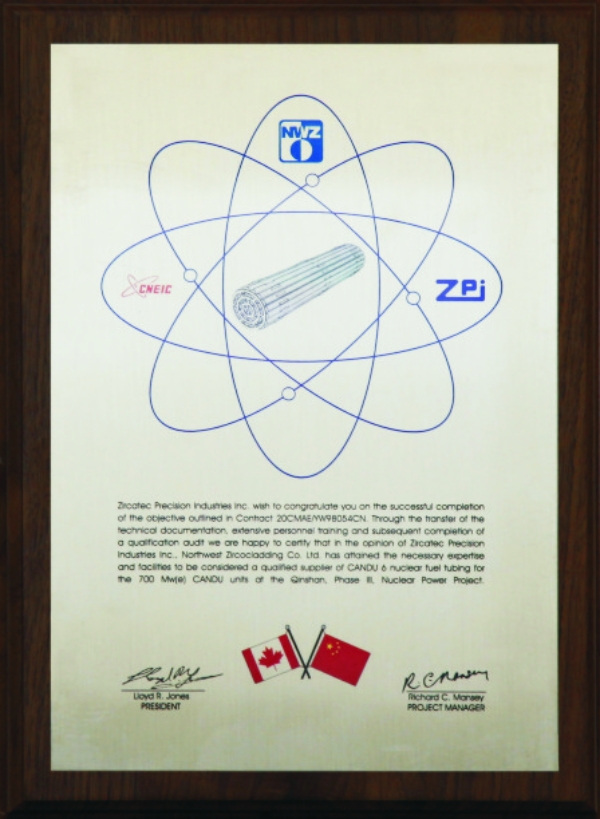 國核鋯業所屬西北鋯管有限責任公司獲得加拿大