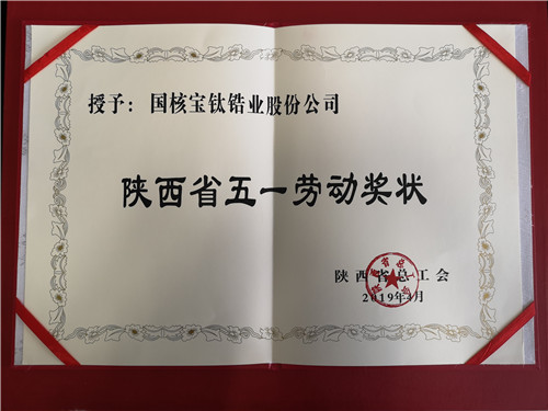 國核鋯業榮獲陜西省五一勞動獎狀