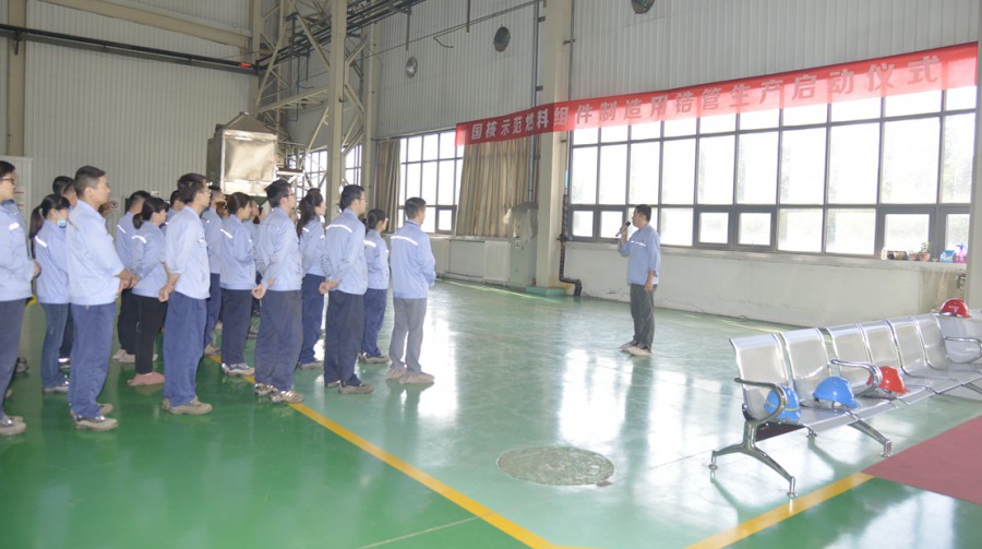 啟動儀式上,員工代表分別進行表態發言。劉敏進行產前動員,要求公司全體員工一定高度重視、抓住機遇、嚴控過程、保質保量,圓滿完成首爐鋯材生產。生技部宣讀生產啟動令,國核示范電站首爐燃料組件制造用鋯管生產正式啟動。